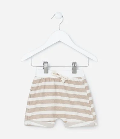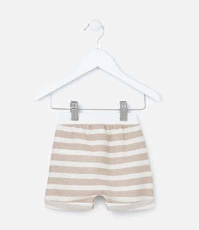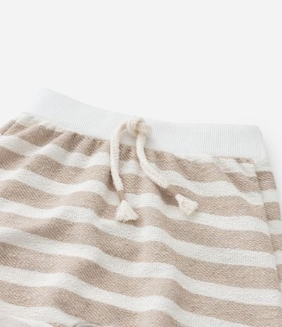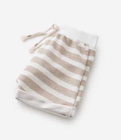 Ref: Bermudinha infantil confeccionada com material mais sustentável, possui cós com amarração, estampa listradinha e barra dobrada.