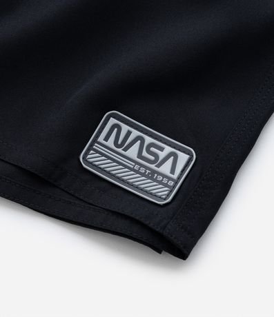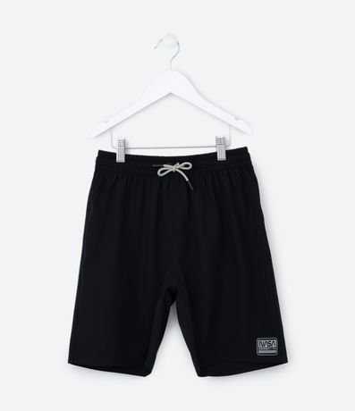 Ref: Bermudinha infantil em microfibra, com cós regulável, bolsinho e etiqueta aplicada na barra com lettering NASA.