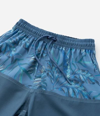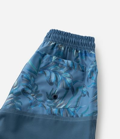 Ref: Bermuda infantil confeccionada em microfibra, no modelo de banho. Possui cós elástico, com cordão ajustável, bolso e estampa de folhagens.