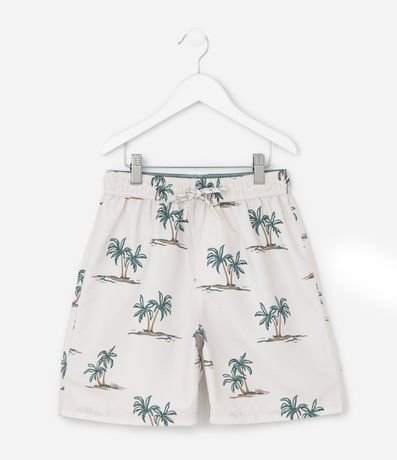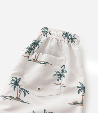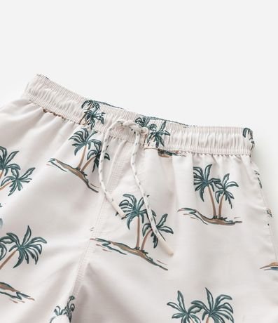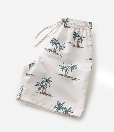 Ref: Bermuda infantil confeccionada em poliéster mais sustentável, no modelo de banho. Possui cós elástico, com cordão, bolso e estampa de palmeiras mini ícones.
