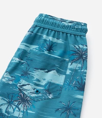 Ref: Bermuda infantil confeccionada em microfibra mais sustentáveis, no modelo de banho. Possui cós elástico, com cordão, bolsos frontais e traseiros e estampa tropical.