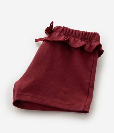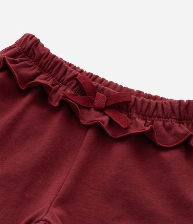 Ref: Bermuda infantil confeccionada em meia malha macia, com cós elástico e detalhe de babadinho na cintura, acompanhado de lacinho decorativo. Modelagem confortável para o dia a dia do bebê. Confeccionado em algodão certificado BCI e boas práticas ambientais, garantindo suavidade e cuidado.