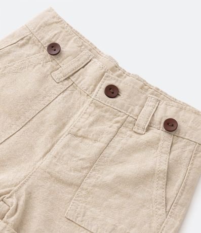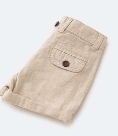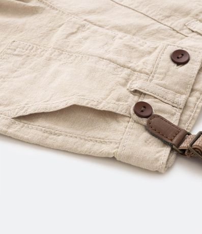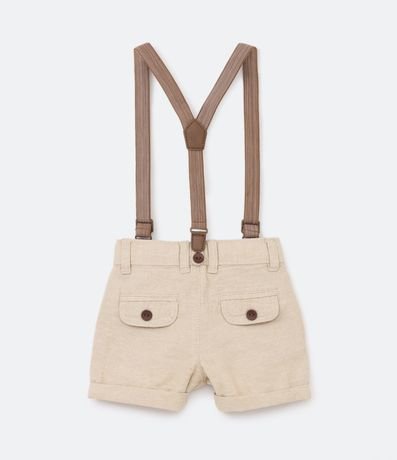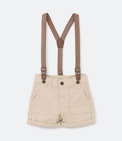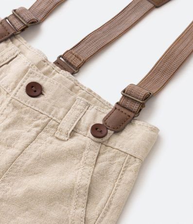 Bermuda Infantil em Linho com Suspensório e Bolsinho Frontal Sobreposto - Tam 0 a 18 meses