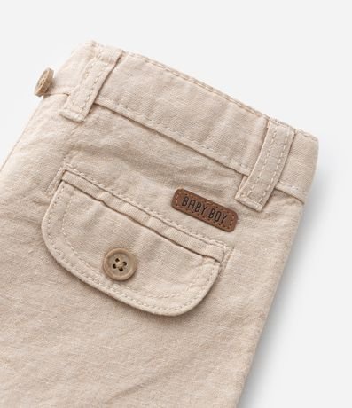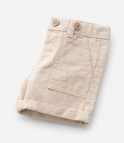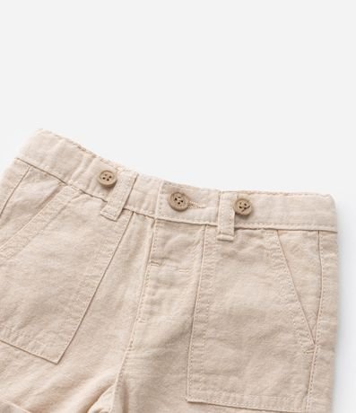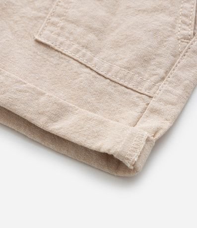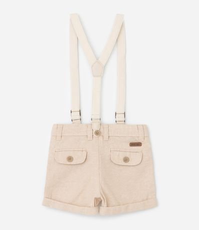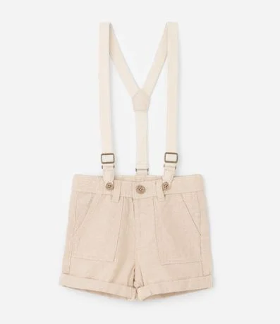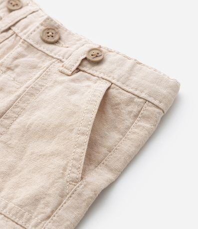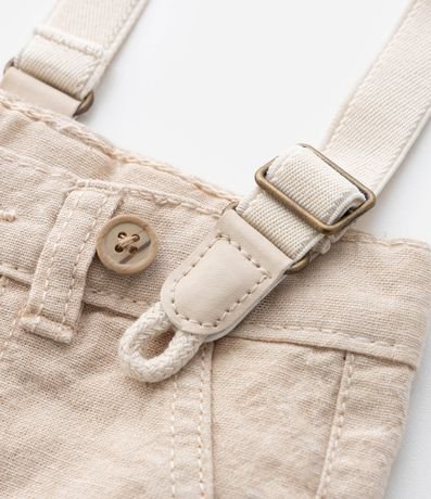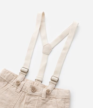 Ref: Bermuda infantil, confeccionada em linho, levinha com suspensório, passantes no cós e bolsinhos frontais sobrepostos.