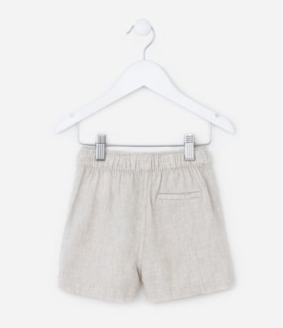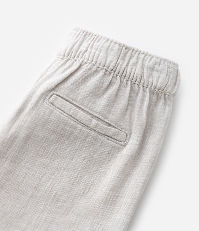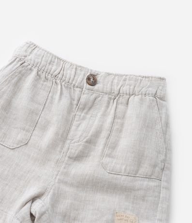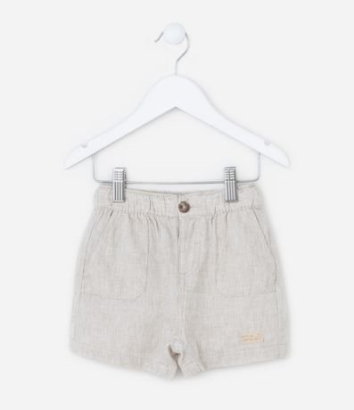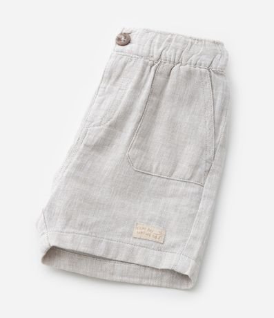 Bermuda infantil confeccionada em linho mais sustentável com boas práticas ambientais. Possui cós com elástico, fechamento por botão, bolsos frontais e traseiros e etiqueta aplicada.