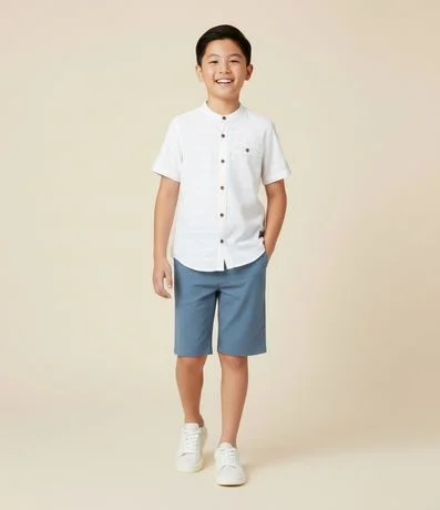 Ref: Bermuda infantil confeccionada em microfibra, com elástico no cós, passantes e bolsos faca.