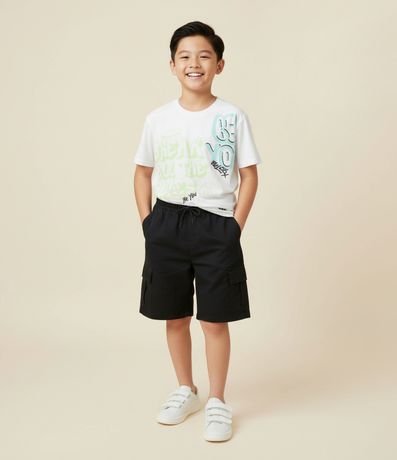 Ref: Bermuda infantil confeccionada em microfibra leve, com bolsos laterais e bolsos cargo com fechamento por aba e velcro. Cós com elástico e cordão ajustável para melhor conforto. Ideal para dias casuais e combinações práticas no dia a dia.