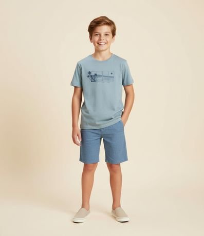 Ref: Bermuda infantil confeccionada em microfibra, com passantes no cós, bolsos e sem estampa.