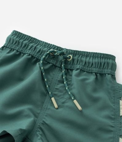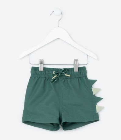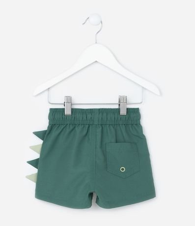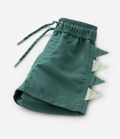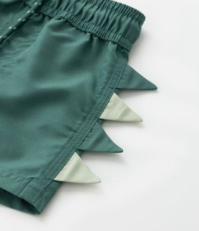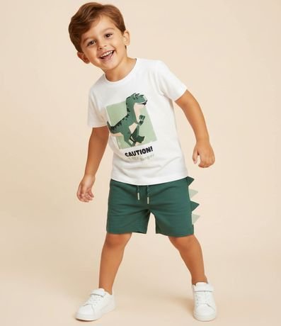 Bermuda infantil confeccionada em microfibra. Possui cós com amarração, bolsinho traseiro e crista interativa de dinossauro na lateral.