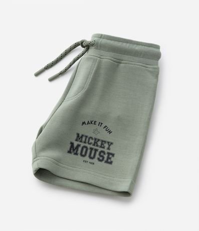 Ref: Bermuda infantil confeccionada em modal mais sustentável. Possui cós elástico, com cordão ajustável e estampa Mickey Mouse.
