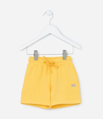 Ref: Bermuda infantil confeccionada em modal, com recortes, cintura elástica com amarração e lettering Sunshine and Summer.
