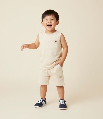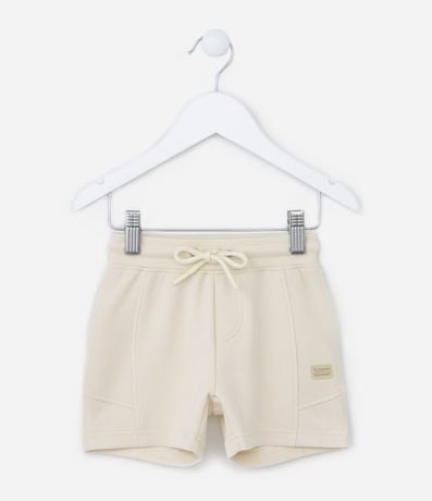 Ref: Bermuda infantil confeccionada em modal, com recortes, cintura elástica com amarração e lettering Sunshine and Summer.