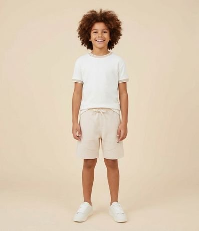 Bermuda infantil confeccionada em moletom sem felpa, garantindo conforto e leveza. Possui cós com elástico e cordão ajustável, bolsos laterais funcionais e bolso traseiro, além de etiqueta decorativa. Confeccionado em viscose certificada e boas práticas ambientais, ideal para looks casuais versáteis.