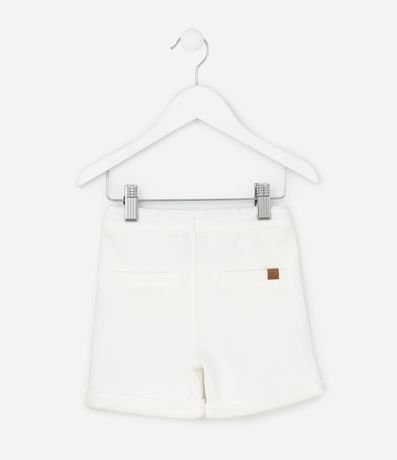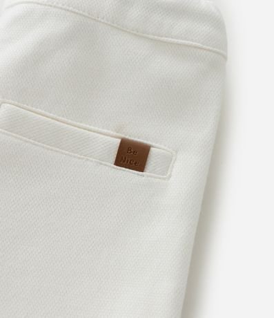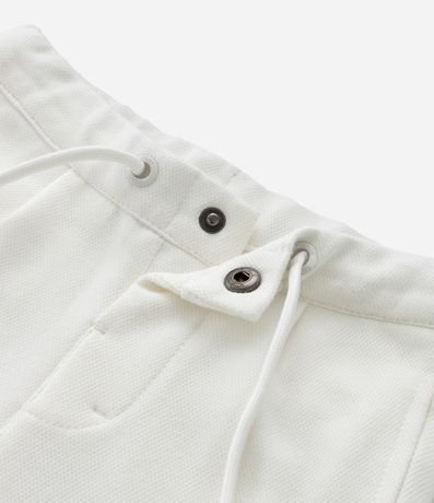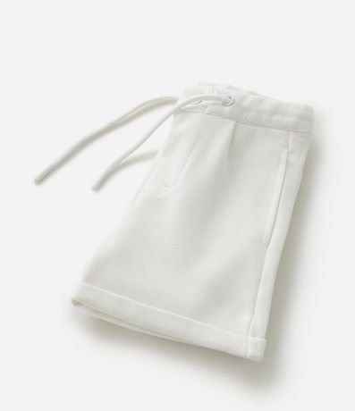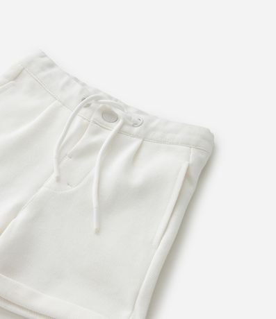Ref: Bermuda infantil confeccionada em piquet, com amarração no cós, bolsos, pregas frontais e barra dobrada. A peça é confeccionada com boas práticas ambientais e algodão certificado bci.
