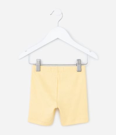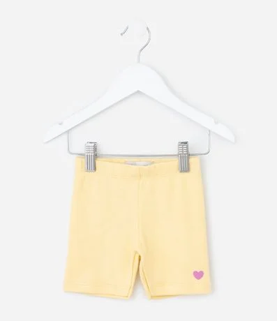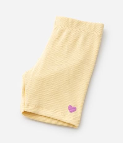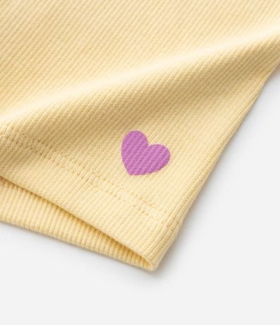 Ref: Bermuda infantil confeccionada em ribana mais sustentável. Possui cós elástico e estampa localizada de coração.