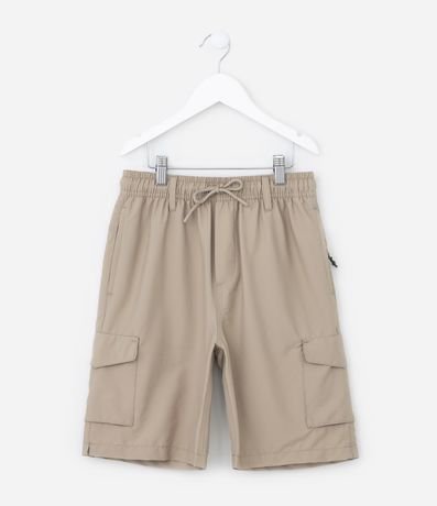 Ref: Bermuda infantil confeccionada em ripstop, com amarração no cós e bolsos cargo laterais.