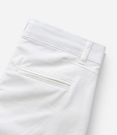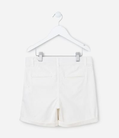 Bermuda infantil confeccionada em sarja, com passantes no cós e bolsos faca. Sem estampa, possui detalhe de barra dobradinha e fechamento frontal tradicional com botão e zíper.