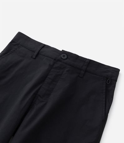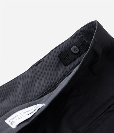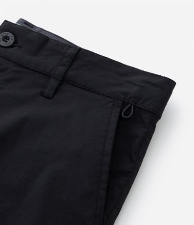 Bermuda infantil confeccionada em sarja, com bolsos e detalhe de puxador elástico no bolso.