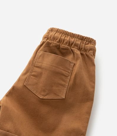 Ref: Bermuda infantil confeccionada em algodão mais sustentável através de boas práticas ambientais. Possui cós elástico, com cordão ajustável, bolso faca e barra dobrada.