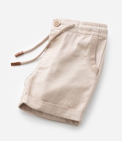 Ref: Bermuda infantil confeccionada em algodão certificado BCI e boas práticas ambientais, com sarja leve e toque macio. Possui cós com elástico, cordão decorativo, bolsos frontais e bolso traseiro com lapela. Barra dobrada completa o visual confortável para o dia a dia.