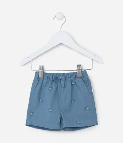 Ref: Bermudinha infantil confeccionada em sarja, de material mais sustentável, com elástico e amarração no cós, estampa de mini bichinhos.