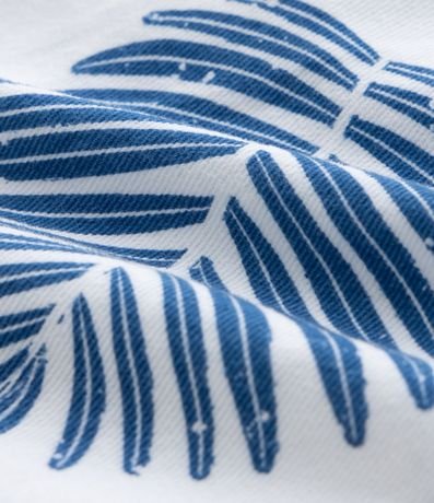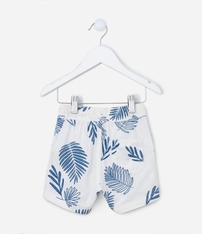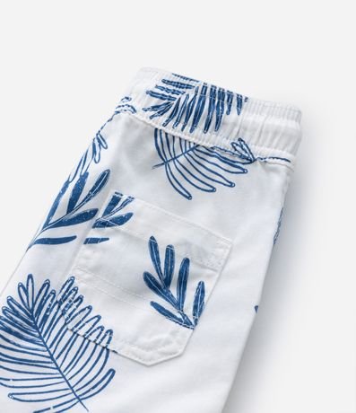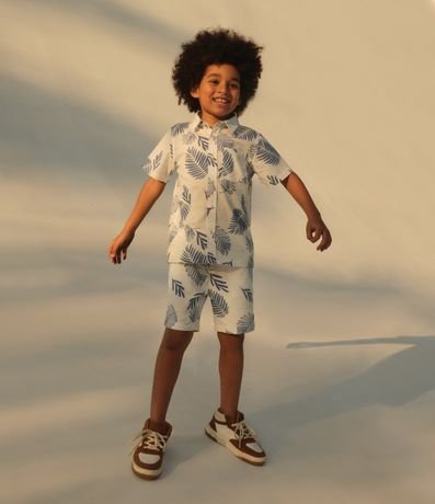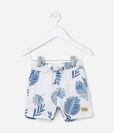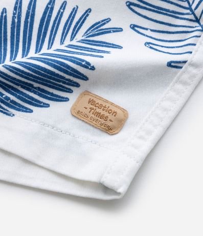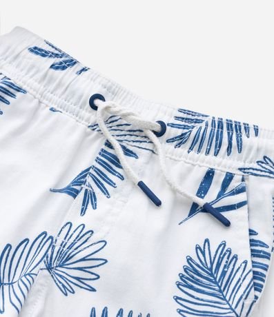 Ref: Bermuda infantil com cós elástico e cordão para ajuste, bolsinhos laterais e estampa de folhagens.