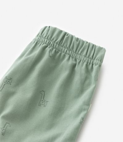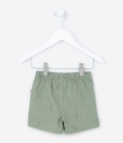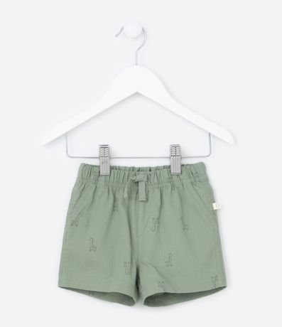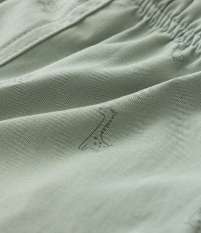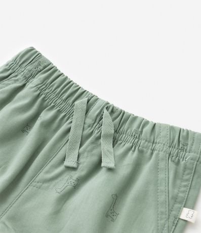 Ref: Bermuda infantil em sarja, com cós elástico e amarração, recortes laterais e estampa de mini girafinhas.