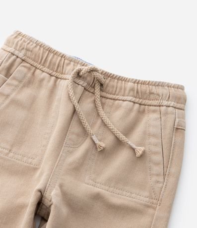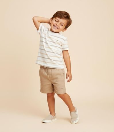 Ref: Bermuda infantil confeccionada em algodão certificado BCI e boas práticas ambientais, garantindo conforto e resistência. Possui cós elástico com cordão ajustável, bolsos frontais e traseiro e etiqueta aplicada.