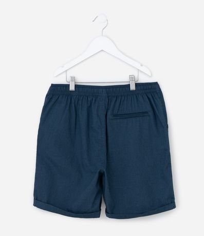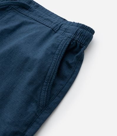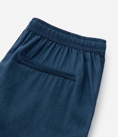 Ref: Bermuda infantil confeccionada em sarja mais sustentável, possui cós com elástico, com cordão, fechamento tradicional e bolsos frontais e traseiros.