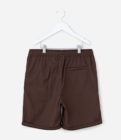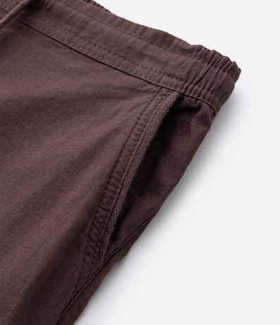 Ref: Bermuda infantil confeccionada em sarja mais sustentável, possui cós com elástico, com cordão, fechamento tradicional e bolsos frontais e traseiros.