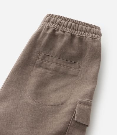 Ref: Bermuda infantil confeccionada em viscolinho mais sustentável através de boas práticas ambientais. Possui cós elástico, com cordão ajustável e bolso cargo.