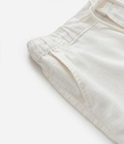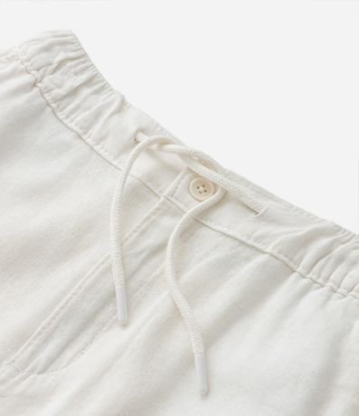 Ref: Bermuda infantil confeccionada em linho e viscose, cós com amarração e bolsinhos.