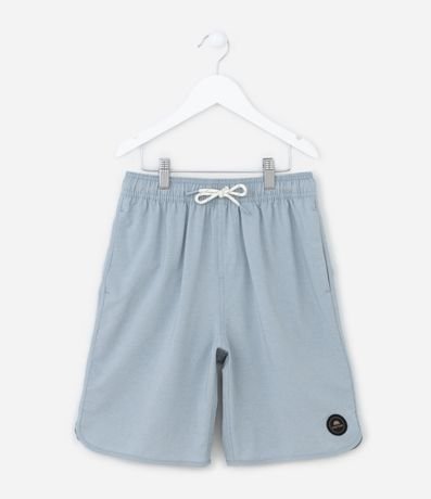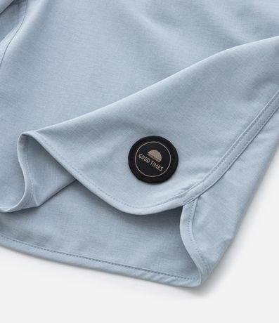 Ref: Bermuda infantil com elástico e amarração na cintura e bolsinho traseiro. Possui também etiquetinha aplicada na barra com lettering "Good Times".