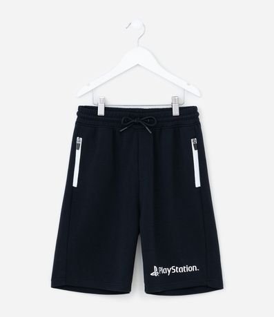 Bermuda Infantil Moletom Playstation com Zíper Refletivo - Tam 5 a 14 Anos