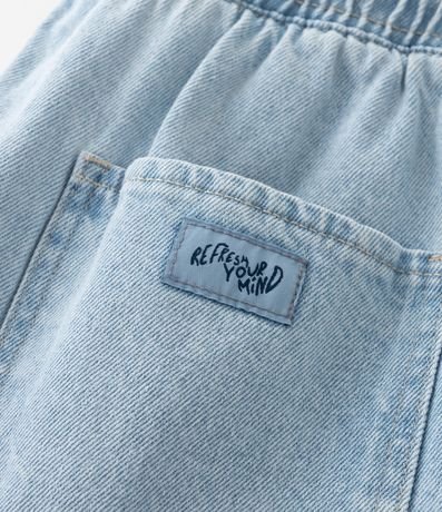 Bermuda Jeans com Cós Elástico e Etiqueta Aplicada
