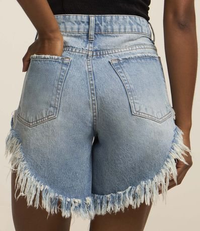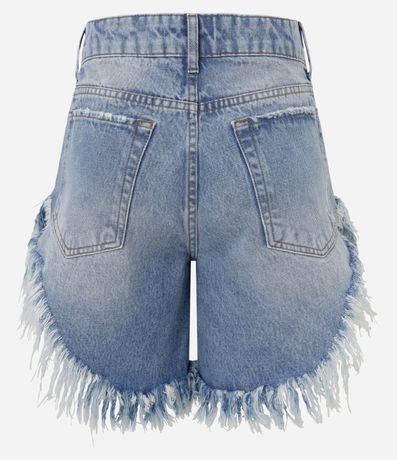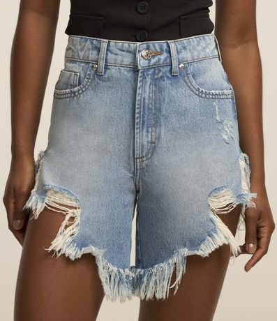 Ref: Bermuda feminina confeccionada em jeans, cós com passantes, com rasgos e puídos. Possui também barra desfiada.