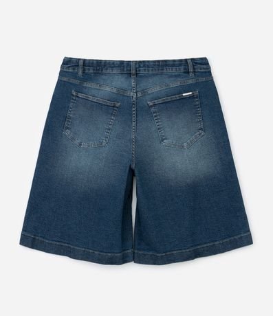 Ref: Bermuda jeans feminina Curve & Plus Size, com efeito de desgaste frontal. Possui cintura com passantes, bolsos curvos frontais e dois bolsos traseiros bem marcados. O corte amplo oferece caimento reto, garantindo visual moderno e confortável para compor diversos looks.