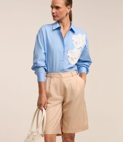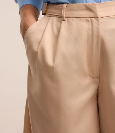 Ref: Bermuda jorts feminina, com passantes no cos, detalhes de fivelas laterais e pregas.