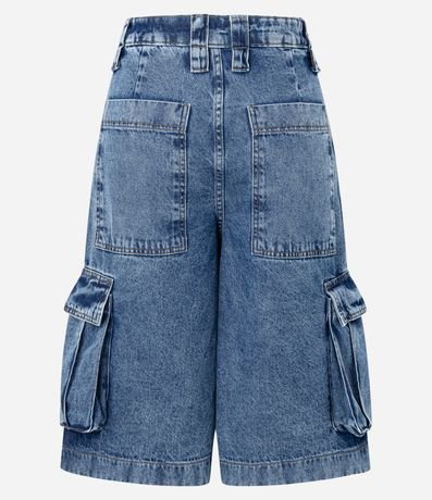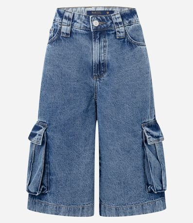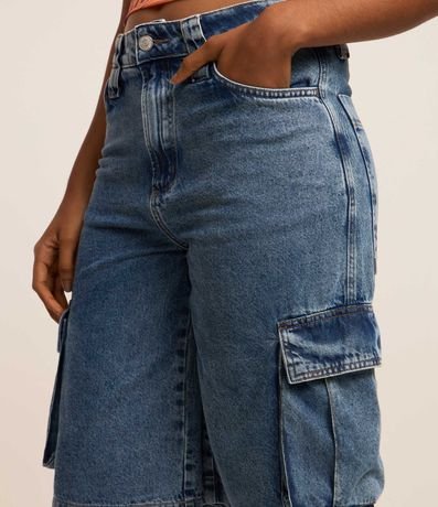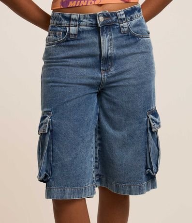Ref: Bermuda jorts confeccionada em jeans, passantes no cós e com bolso cargo na lateral.