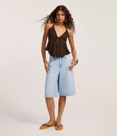Ref: Bermuda jorts, confeccionado em jeans, com passantes no cós, fechamento tradicional e bolsos. Este produto possui material mais sustentável em sua composição, sendo ambientalmente mais responsável.