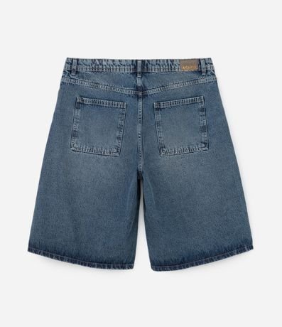 Bermuda feminina Curve & Plus Size confeccionada em jeans mais sustentável com boas práticas ambientais, peça no modelo jorts com cós fixo com passantes, ajuste interno por botão para garantir maior conforto durante o uso, fechamento tradicional, bolsos e detalhe de recortes assimétricos.
