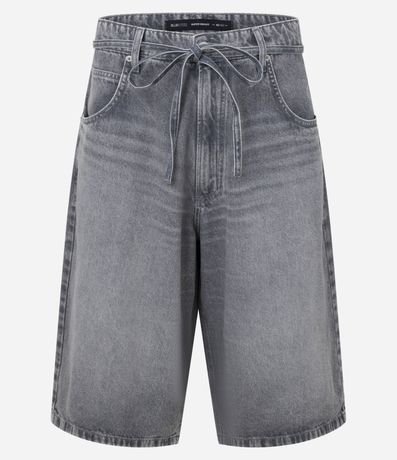 Bermuda Jorts Super Baggy em Jeans com Cinto Amarração