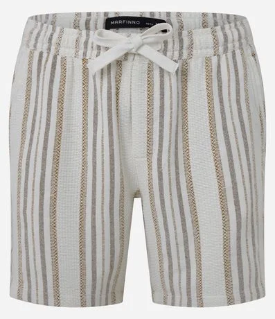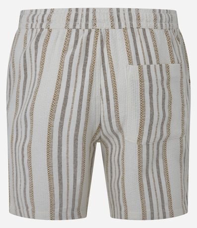 Ref: Bermuda masculina confeccionada com mais sustentabilidade, cós elástico com cordão para ajuste, bolsos, listras texturizadas.