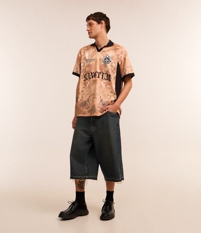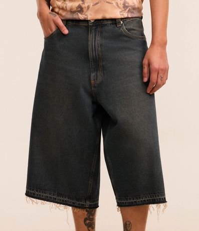 Ref: Bermuda masculina confeccionada em jeans mais sustentável com boas práticas ambientais, no modelo mega baggy. Possui cós com passante, fechamento tradicional, bolsos e barra desfiada.