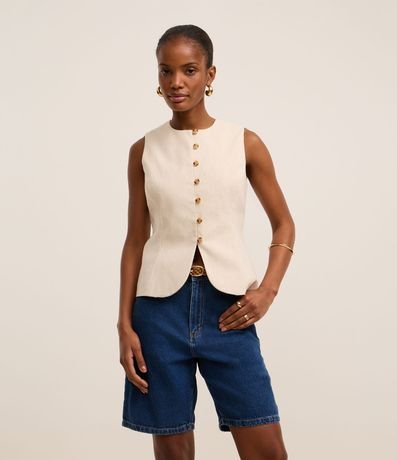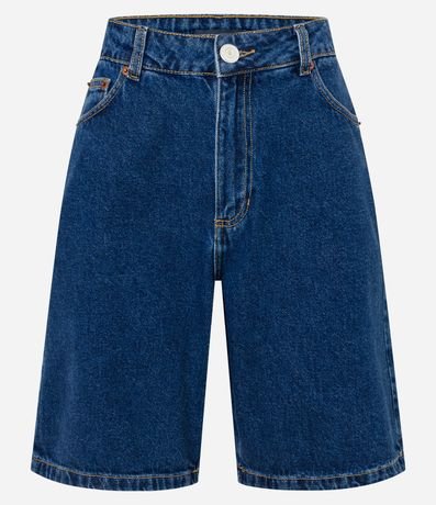 Bermuda regular com cintura alta, confeccionada em jeans com algodão bci. Bolsos frente e costas e sem estampa.
