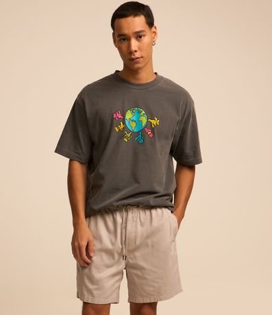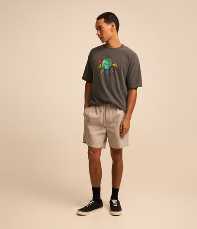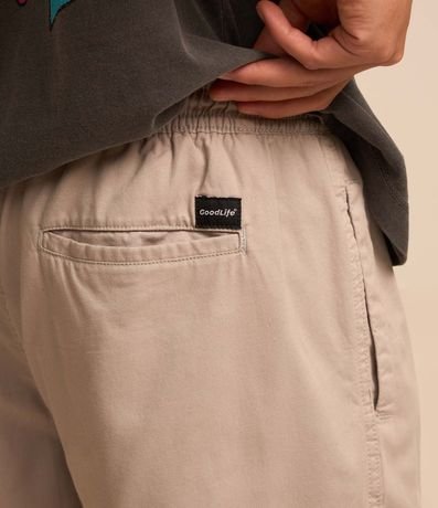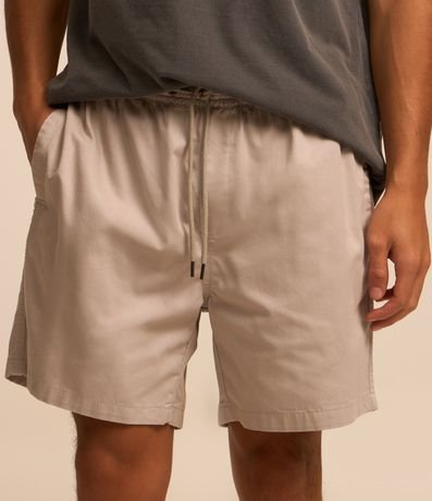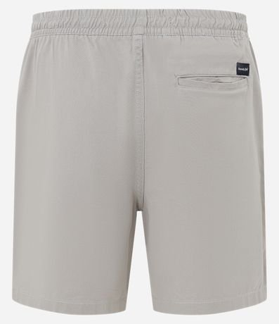 Ref: Bermuda regular masculina confeccionada em sarja com baixo consumo de água com elástico no cós e cordão para ajuste. Sem estampa, possui detalhe de bolso embutido na parte traseira com etiqueta.