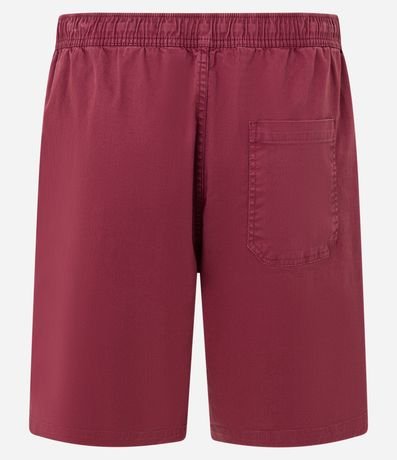 Bermuda regular masculina, confeccionada em sarja lavada, com amarração no cós e bolsos.