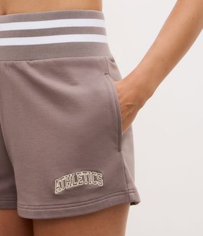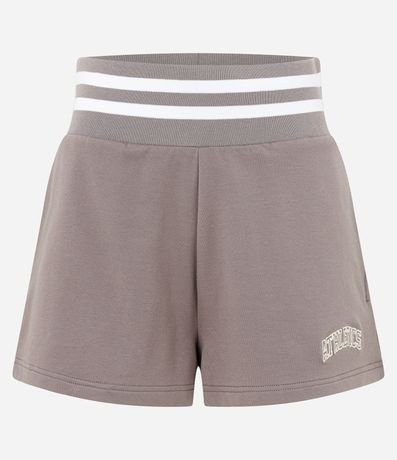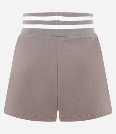 Ref: Bermuda feminina esportiva confeccionada em moletom mais sustentável, no modelo regular. Possui cós contrastante em ribana e estampa lettering bordada.