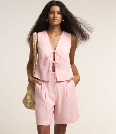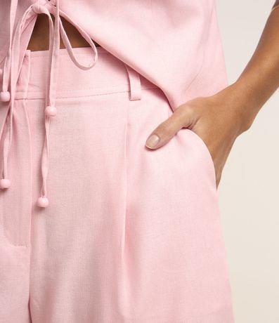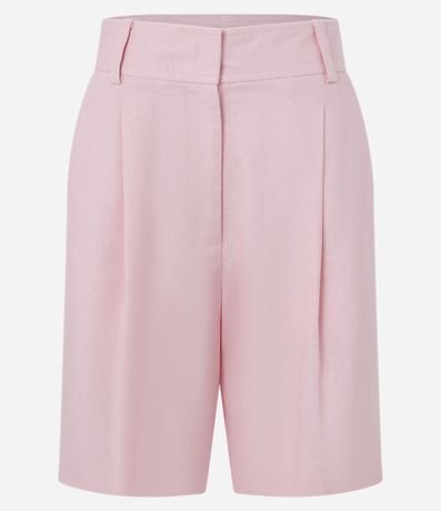 Ref: Bermuda feminina confeccionada em viscolinho, com cintura alta e modelo reta. Possui cós com passantes, fechamento tradicional frontal, bolsos e detalhe de pregas.