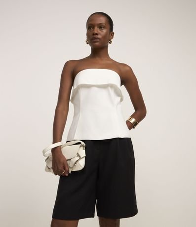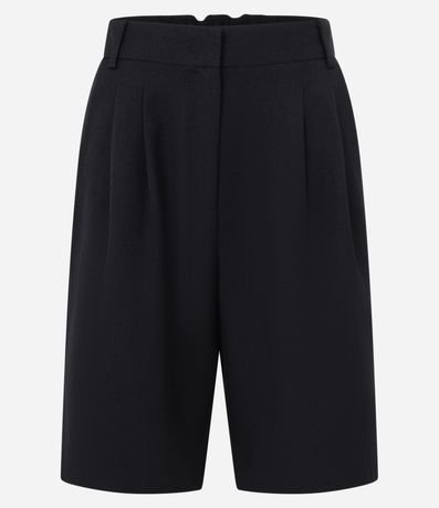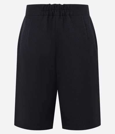 Bermuda reta, em alfaiataria, possui cintura alta e elástico na parte de trás.